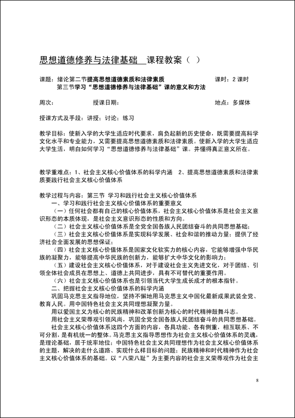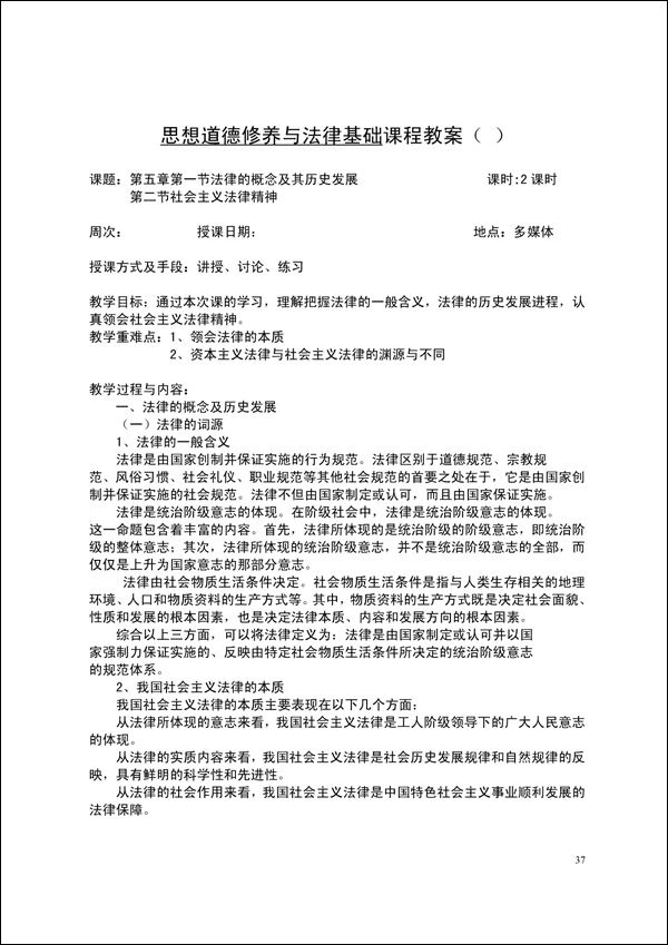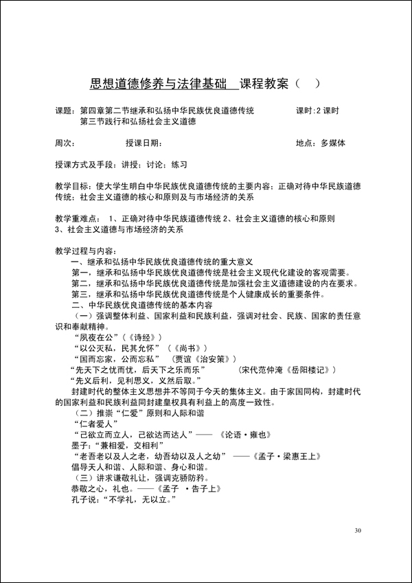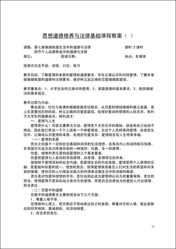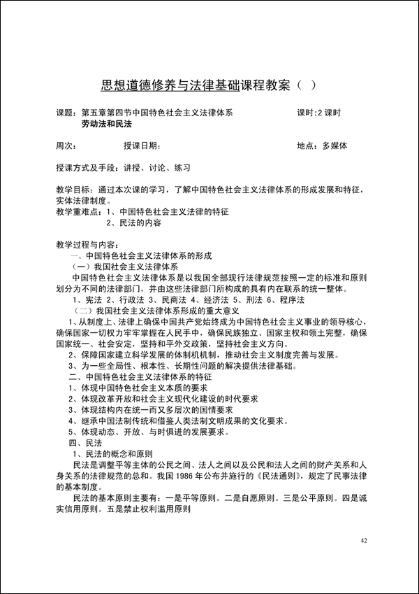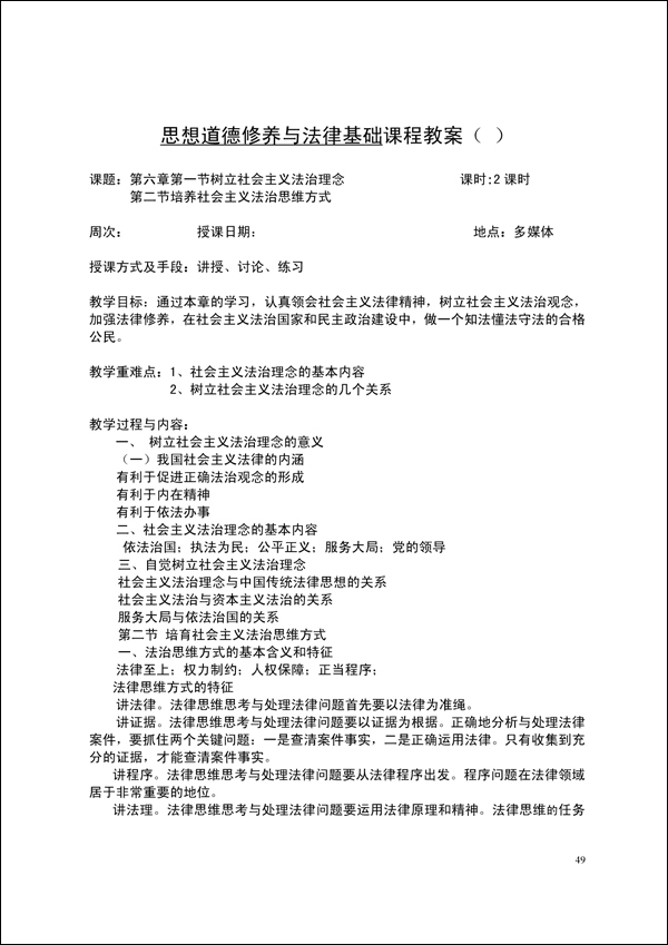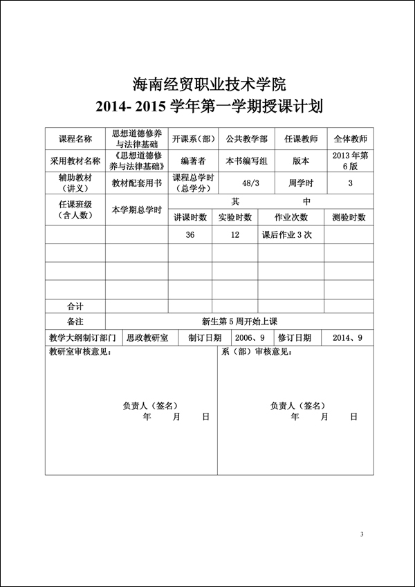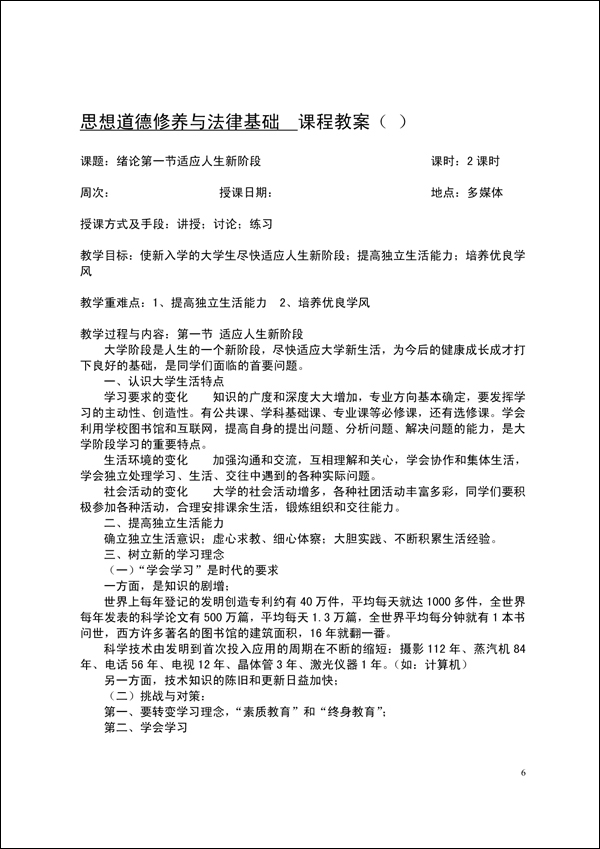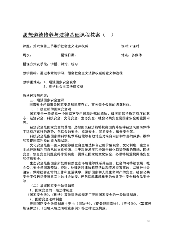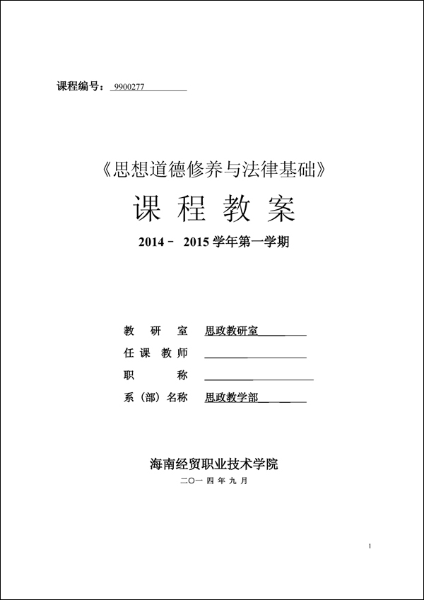 2014-2015学年第一学期思修法律教案