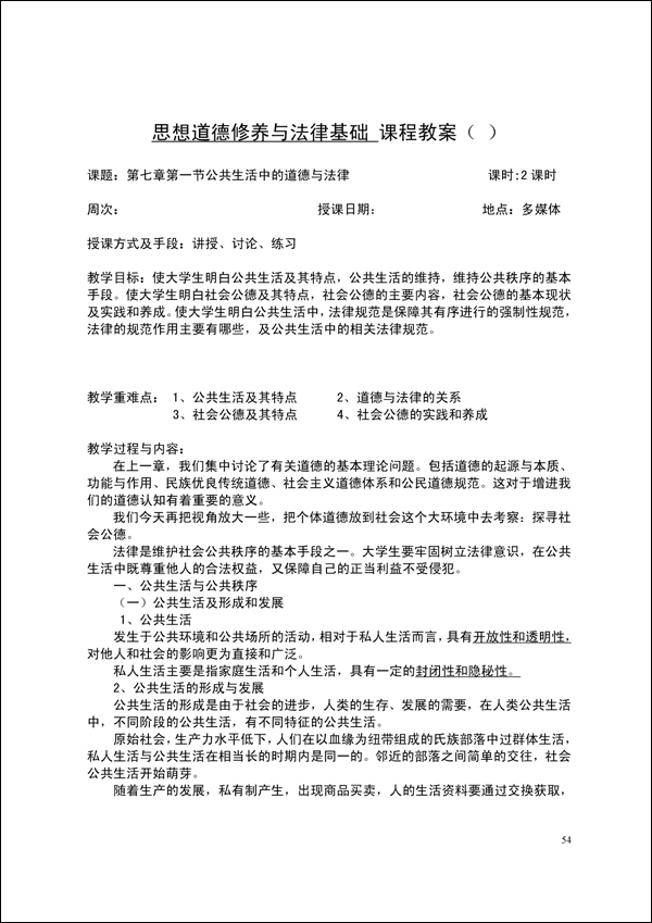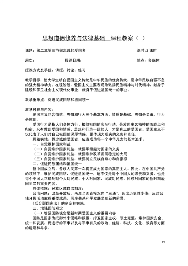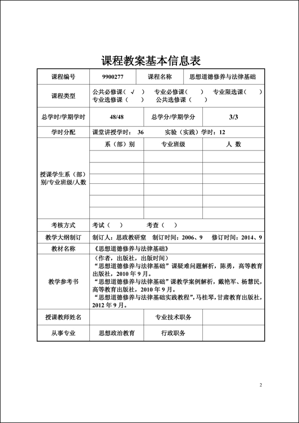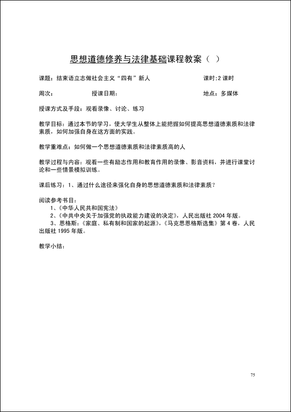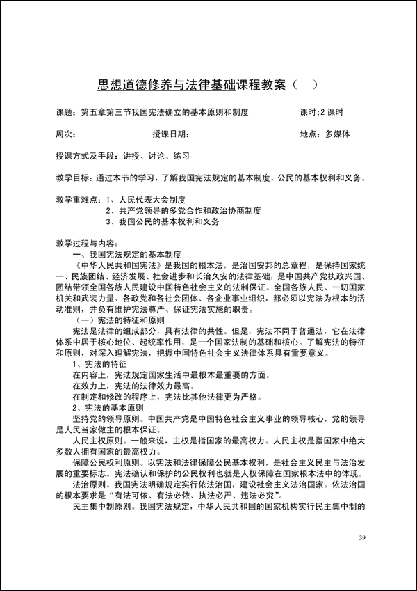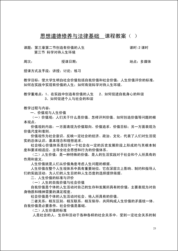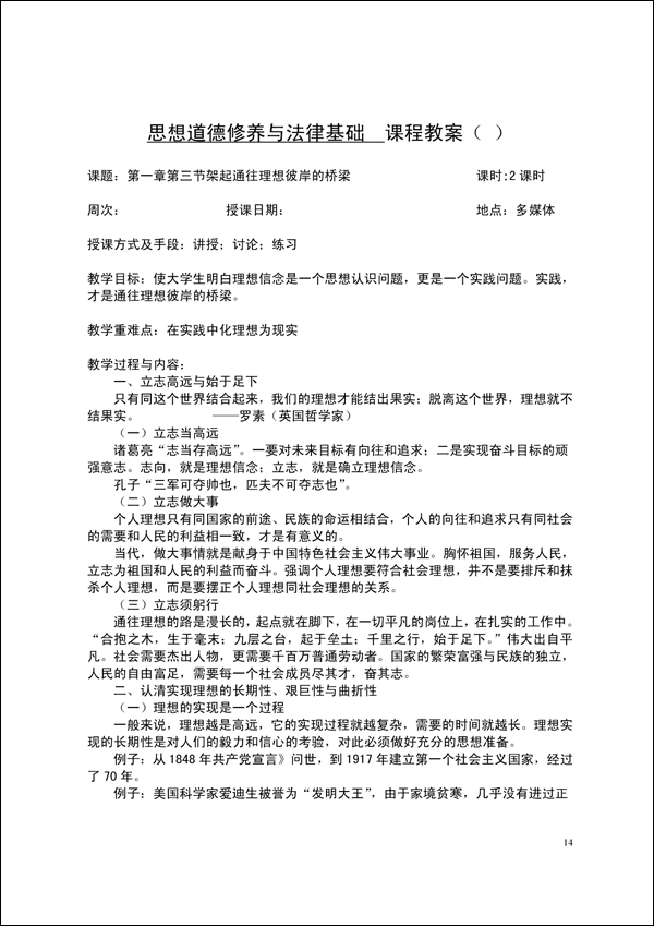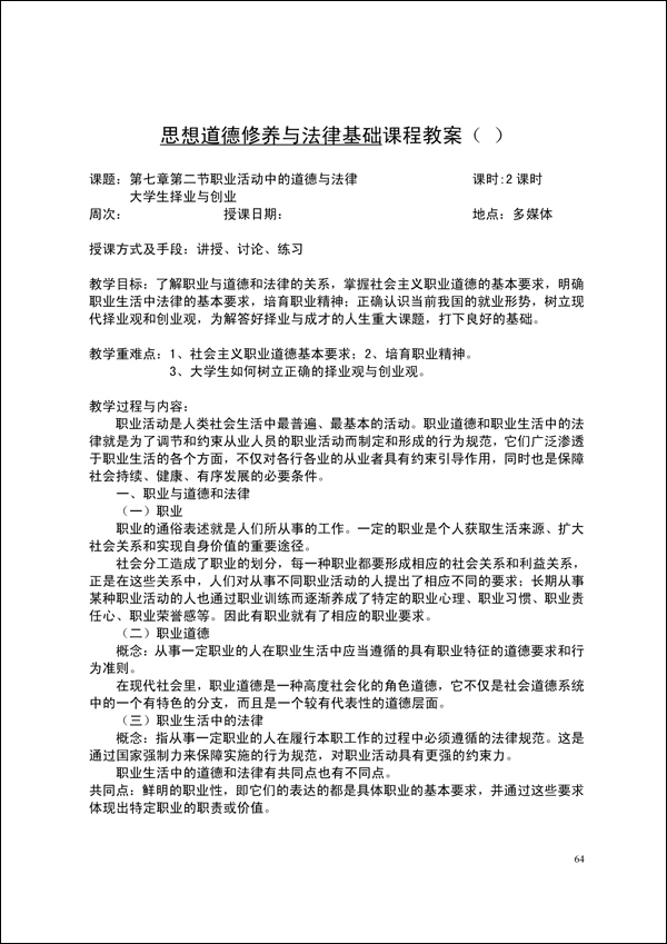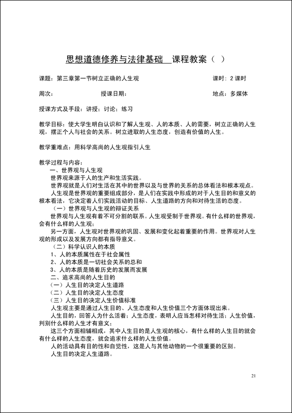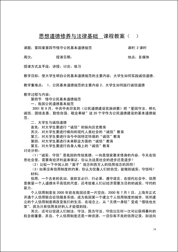 2014-2015学年第一学期思修法律教案