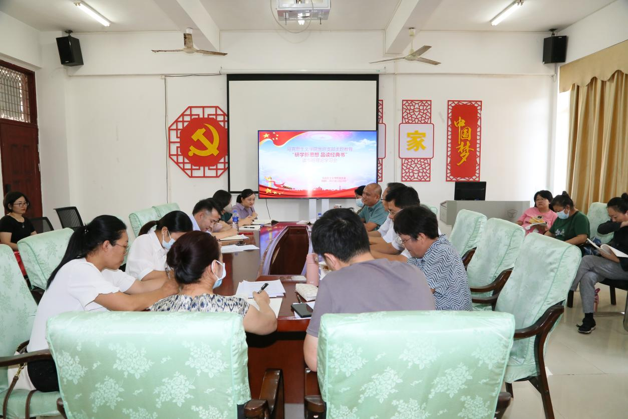 5月23日下午,beats365亚洲版官网党总支开展学习贯彻习近平新时代中国特色社会主义思想主题教育暨2023年“研学新思想 品读经典书”第五期读书班学习,集中学习《习近平新时代中国特色社会主义思想专题摘编》的第十三专题《坚决维护国家安全和社会稳定》,第十四专题《把人民军队建设成为世界一流军队》,导读经典文章《1844年经济学哲学手稿》,分享学习心得体会。海南经贸职业技术学院党委书记张继友、宣传部部长方天海出席会议,会议由beats365亚洲版官网党总支书记陈焕镜主持。