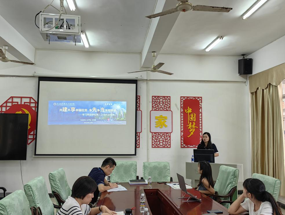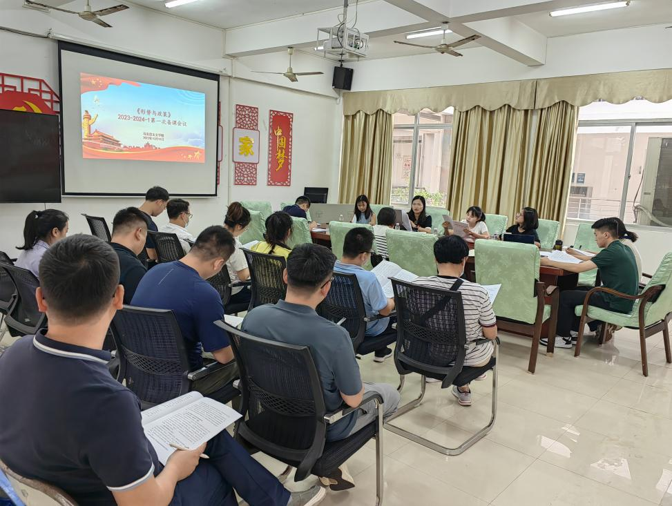 10月10日下午两点半,beats365亚洲版官网在1-323举行了本学期第一次《形势与政策》课集体备课会,本学期担任该课程的任课教师参加了此次会议,活动由该课程教研室主任吴海翠老师主持,吴老师介绍了本学期课程的开设情况、备课事宜、以及海南经贸职业技术学院beats365亚洲版官网“形势与政策”课教学参考资料进行讲解。
