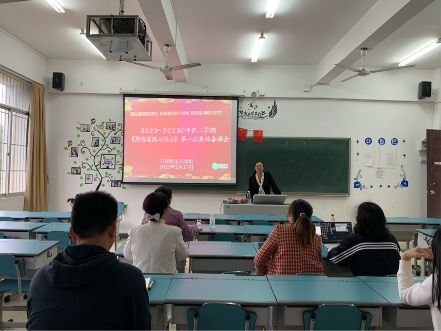 2月17日上午,beats365亚洲版官网举行了本学期第一次“思想道德与法治”课集体备课会,本学期担任《思想道德与法治》课程的任课教师参加了此次会议,活动由《思想道德与法治》课教研室主任常彩霞老师主持,常老师介绍了备课的背景要求,针对本学期开学第一课的相关要求做了部署。