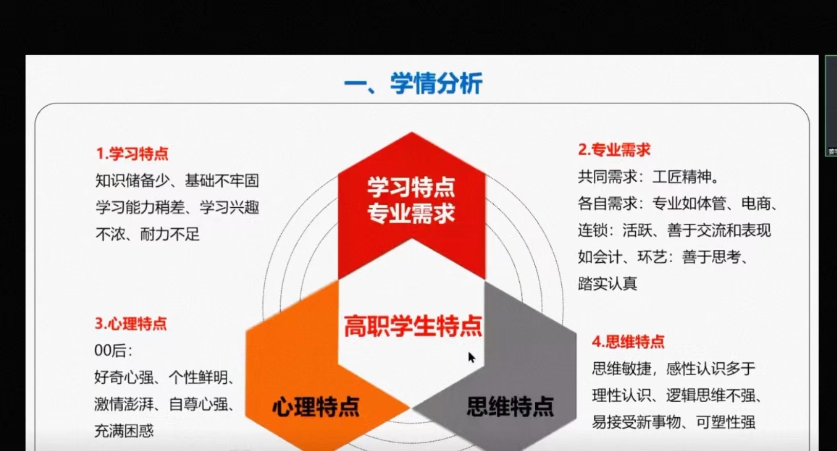 教学副院长充分肯定了此次备课会的备课成果,提出任课教师要不断强化责任心,立足高职学生的实际来思考教学内容、教学方法,善于观察学生,使用多元化教学手段,做到润物细无声。