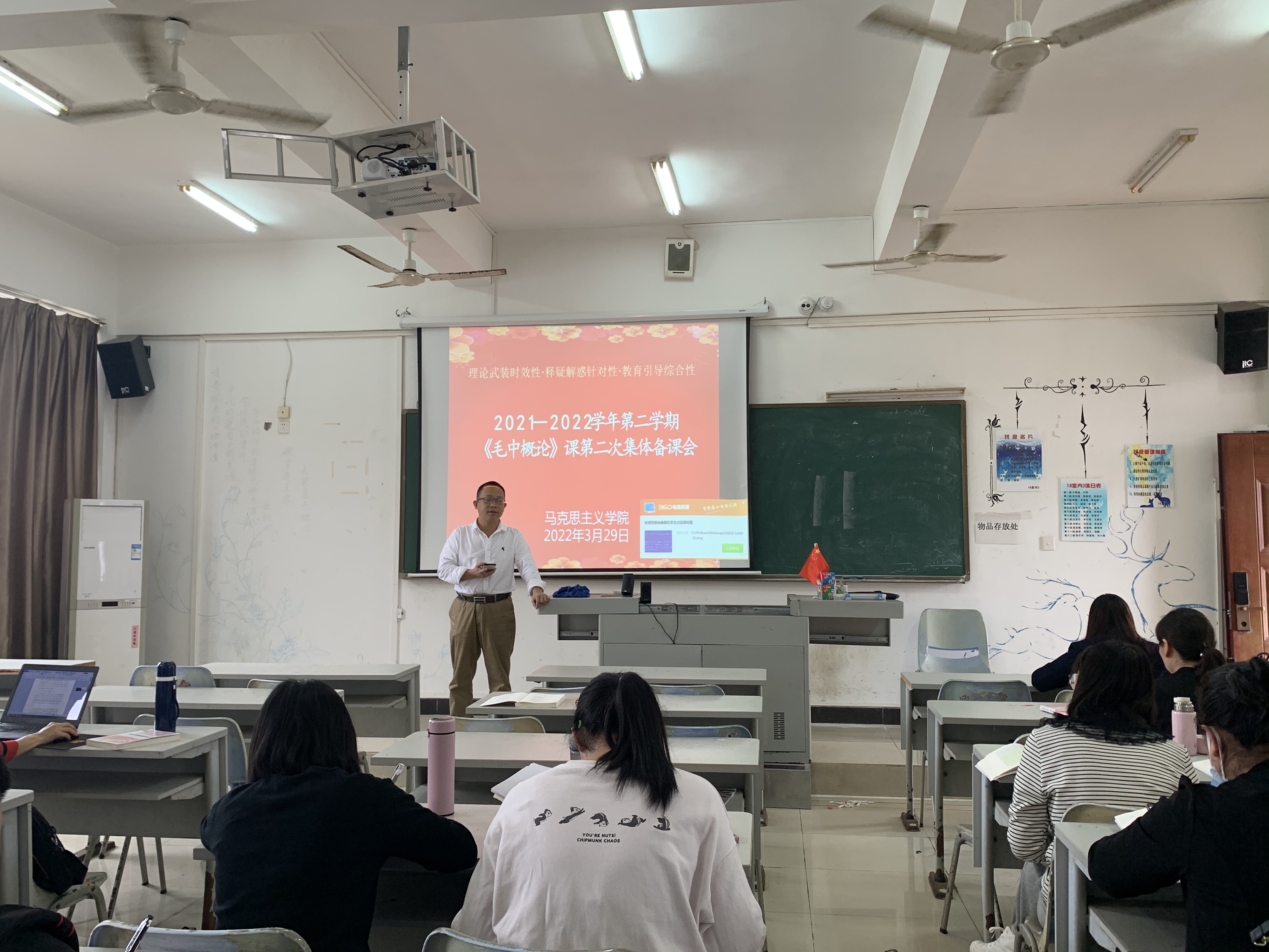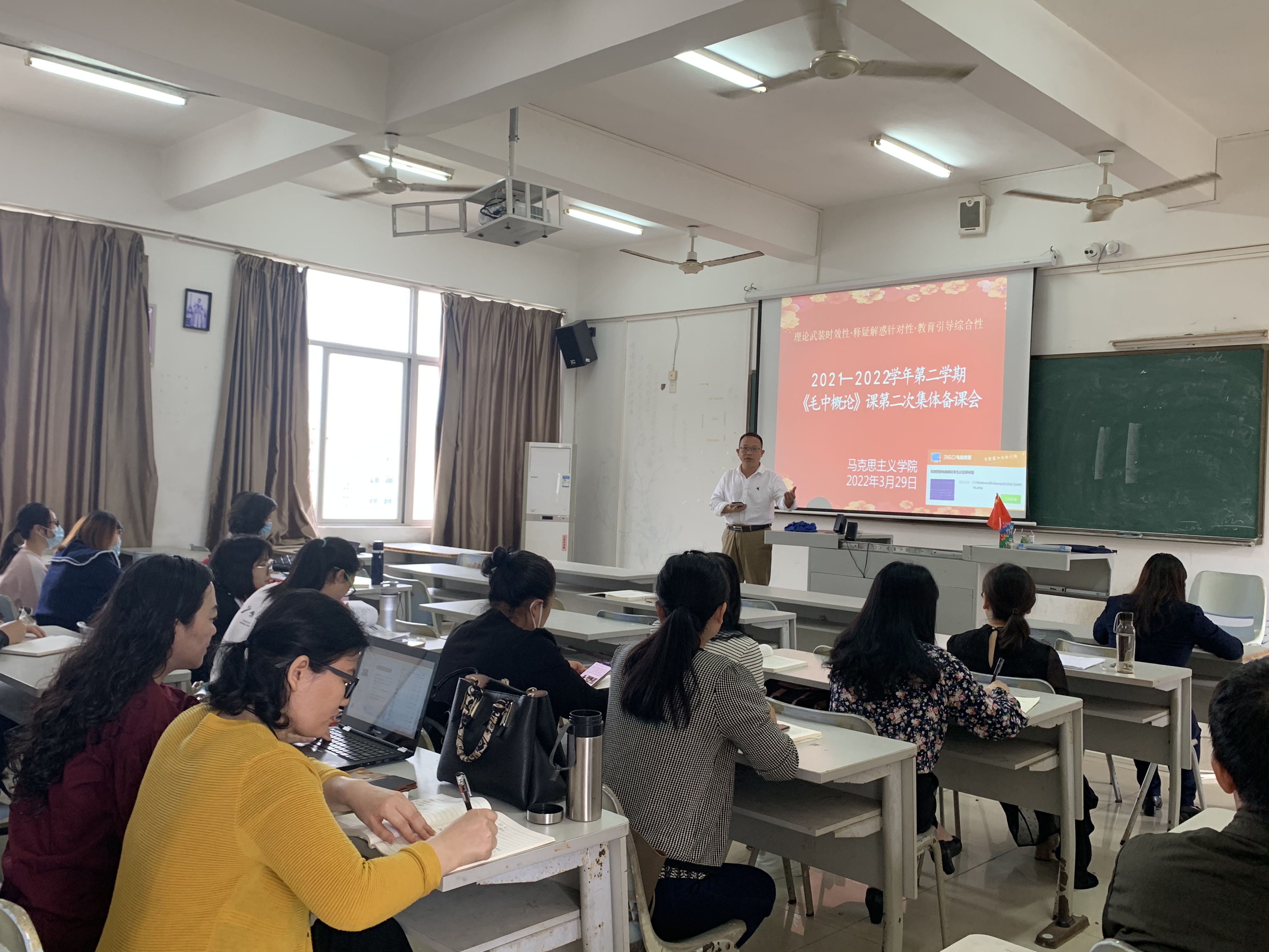 3月29日下午,beats365亚洲版官网在第一教学楼525教室举行本学期第二次“概论”课集体备课会,会议由教学副院长胡明辉主持,本学期所有担任《毛泽东思想和中国特色社会主义理论体系概论》课程的专兼职任课教师参加会议。