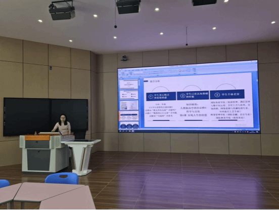 备课会重点围绕第一章教学内容。陈子佳昆老师从教学分析、教学目标、教学策略、教学实施、教学反思等方面进行了说课。其中在案例的选取方面,陈子佳昆老师做到了与专业结合,精心选取了服装专业学生的生动案例,以问题链的方式贯穿整个教学环节,有效实现教学目标。