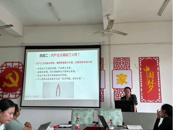 教研室主任常彩霞老师鼓励青年教师要加强马克思主义基本原理的学习,不断提升自身的理论水平,同时在课堂上要注重加强对学生的价值引导,要认真做好教学设计,不断尝试不同的教学方法,提升教学实效。此次备课会在交流研讨中大家进一步加强了对如何上好一堂思政课的认识,进一步坚定了提升教学能力的信心和信念。