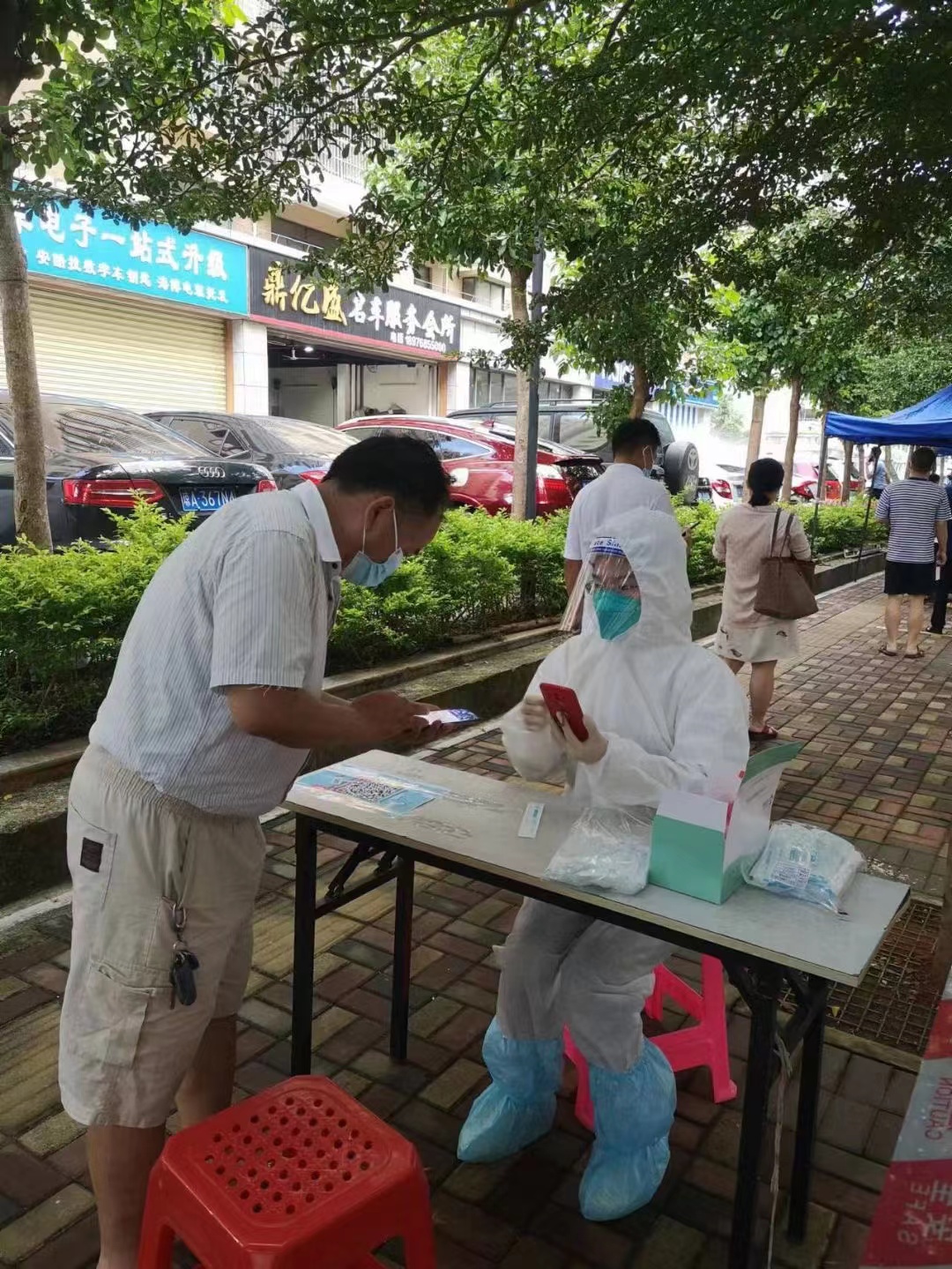 其实在8月8日前,马院人已经行进在抗疫最前线。8月7日,综合教研室主任吴海翠在海口市全员核酸的第一日便加入了府西社区的核酸信息采集队伍。作为志愿者,吴老师勤勤恳恳,任劳任怨,彰显了马院青年教师勇于担当的精神风貌。