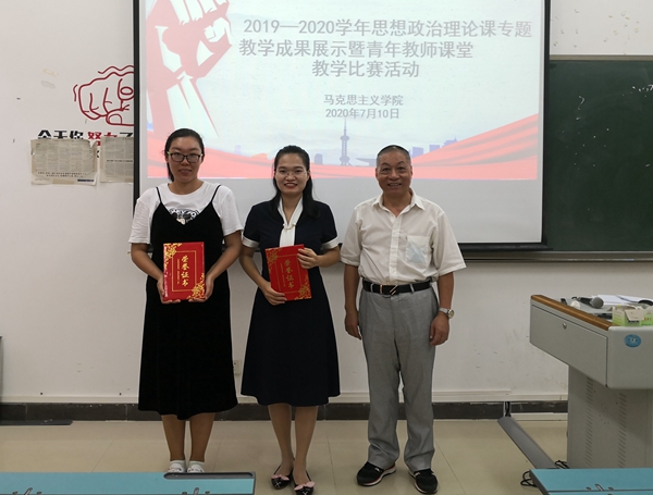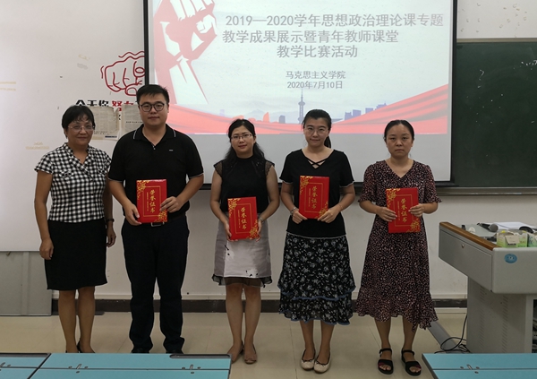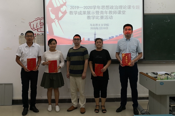 2020年7月10日上午,我院在第一教学楼院举行2019—2020学年思想政治理论课专题教学成果展示暨青年教师课堂教学比赛活动。在2019—2020学年中承担《思想道德修养与法律基础》《毛泽东思想和中国特色社会主义理论体系概论》《中国近现代史纲要》《形势与政策》等课程教学任务的12名专兼职思政课教师参加比赛。