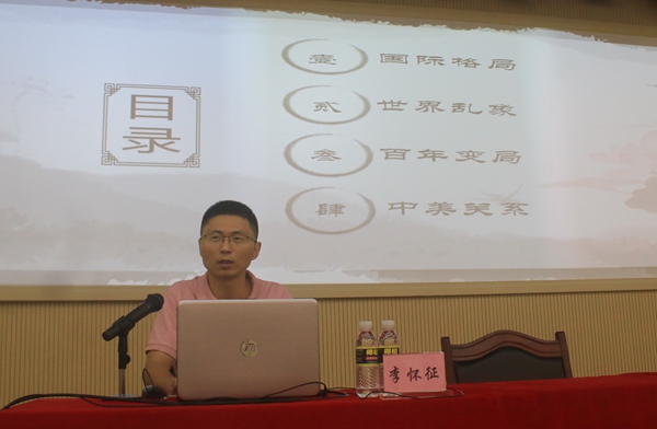 王丽丽以《马克思探寻未来共同体的三重批判视阈及其现实启示》为题,从政治哲学批判视阈-批驳“虚幻共同体”,经济哲学批判视阈-超越“抽象共同体”,人类学批判视阈-反思“自然共同体”,明确多重批判视阈的现实启示等四方面作报告。梁怀新以《安邦定国:总体国家安全观解析》为题,从新中国国家安全观的演变、总体国家安全观点的提出及基本内容、当前我国国家安全面临的风险与挑战、坚持总体国家安全观,确保国家长治久安四个方面分享了自己的思考。李怀征围绕《百年变局与中美关系》主题,从国际格局、世界乱象、百年变局和中美关系进行报告。吴诗尧以《红色弥赛亚:以色列工党社会主义思想探析》为题,从历史背景概览、以色列工党及其意识形态、以色列工党的社会主义思想概览、以色列工党社会主义嬗变的因素进行详细阐述。