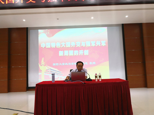 讲座中李保忠教授主要从当今的世界特点与当代中国所处的历史方位、积极构建中国特色的大国外交战略、强军兴军迈出历史性步伐三个方面展开。首先,梳理了当今世界的显著特点,指出当今世界正处于大发展大变革大调整的时期,和平与发展仍是时代主题,合作共赢是当今时代的潮流,并对我国所处的历史方位——中国特色社会主义新时代作了详细的说明。其次,强调我们要积极构建大国特色外交,坚定不移走和平发展道路,努力构建人类命运共同体。最后,指出军队是党执政重要基础,是实现民族伟大复兴的重要保障,我国强军兴军现已经迈出了历史性的步伐,革命化现代化建设得到全面推进和发展。