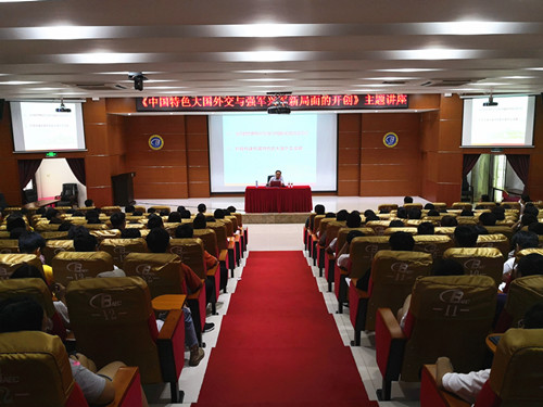 本院4月2日讯(beats365亚洲版官网报道)3月29日下午,为了贯彻习近平在全国思想政治理论课座谈会上重要讲话精神,进一步落实我院集体备课制度,提升毛泽东思想和中国特色社会主义理论体系概论以及形势与政策、军事理论等课程的高度,提高授课教师的教学能力,海南经贸职业技术学院beats365亚洲版官网邀请国防大学政治学院教授、博士生导师李保忠做“中国特色大国外交与强军兴军新局面的开创”为主题的学术讲座,会议由马桂琴院长主持,beats365亚洲版官网全体专兼职教师、部分学生等300余人参加本次讲座。