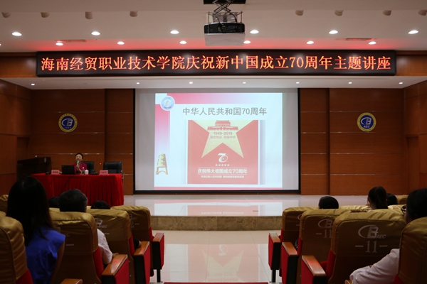 本院9月22日讯(beats365亚洲版官网 报道)2019年9月20日下午,北京师范大学beats365亚洲版官网副院长熊晓琳教授应邀来到海南经贸职业技术学院,为师生作题为《音乐作品中的家国情怀——庆祝中华人民共和国成立70周年》的专题报告。