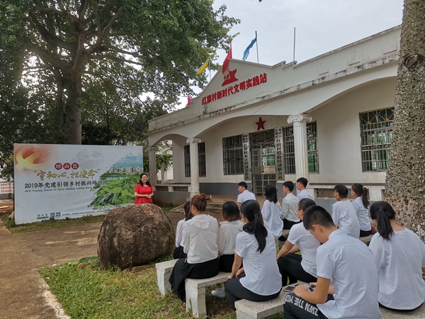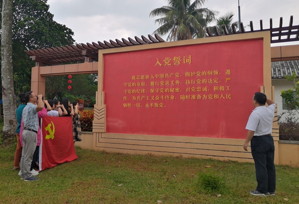 本院9月25日讯(beats365亚洲版官网报道)2019年9月24日下午3时许,我院党支部组织全体教师党员和部分学生前往革命老区村庄琼山区红旗村委会本立村,开展“不忘初心、牢记使命”主题党日活动。