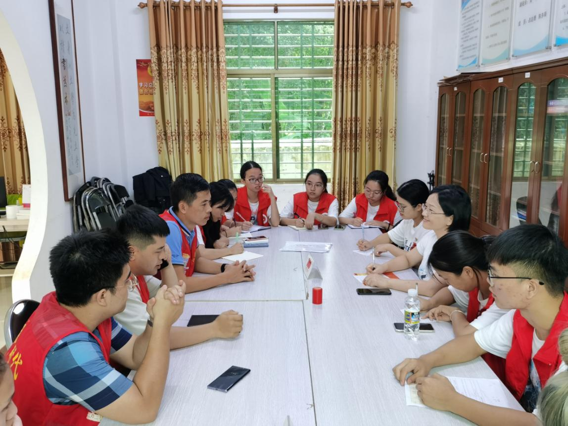 在冯老师的带领下,逐梦者队队员与道崇村委会工作人员进行了座谈,我们了解到道崇村目前主要农作物是三角梅,龙眼,蜜柚,以山茶油的加工制作为主要产业,面临的棘手问题同云岭村一样,在销售环节犯了难,未来还是希望能打通电商渠道,帮助农民销售农产品。此外,道崇村工作人员表示,在乡村振兴的新格局下,对人才的需求从技术农民向更加多元的新农人转变,原有的乡村人才培育模式需要拓展和升级。如何吸引更多人才投身乡村振兴,如何培养更多元、更高级的乡村振兴人才成为当务之急。目前工作队主要从三个方面留住人才。其一,通过补贴和配套条件建设,实施“农业人才下乡”计划,吸引人才、留住人才。其二,实行“引企入教”改革,降低企业参与办学难度,推动新农民职业教育的学历化,吸引更多的年轻人选择“三农”专业。其三,加强对农村致富带头人、家庭农场主的培育,引导涉农企业输出成熟的农业人才培养方法和产业管理经验,关注乡村人才梯队建设。其四,增强投身乡村振兴人才的荣誉感,引导社会对“绿领”新农人的身份认同。