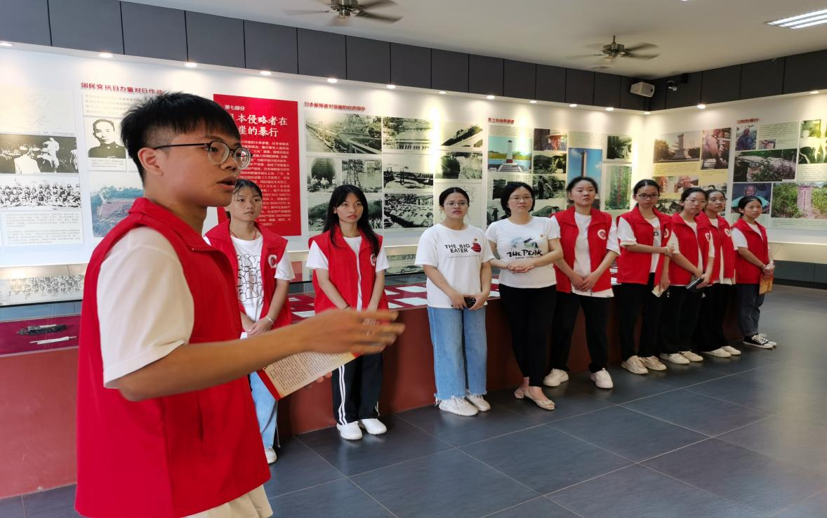 缅怀先烈,领悟精神,要求每个青年笃行之。经过精心准备,冯丹和黄文宇两位队员化身讲解员,带大家一起学习琼崖革命的辉煌历史。冯丹同学为队员介绍了琼崖抗日战争的萌芽、扩大、爆发到建立抗日根据地的前半段琼崖抗战史,黄文宇同学为队员讲解了琼崖战士获得华侨支援,在冯白驹的带领下,独立总队多次粉碎了日军的“蚕食”和“扫荡”,获得抗日战争的最后胜利的历史。讲解中,黄文宇同学说道中共琼崖抗战始终坚持独立自主原则,坚持团结抗战,发展和壮大抗日武装力量,巩固和扩大抗日根据地,并且获得广大人民的拥护和支持,才取得抗日战争的胜利。放眼今日,我们也要独立自主、自立自强,团结一切可以团结的力量主动投身于社会主义事业的建设中。