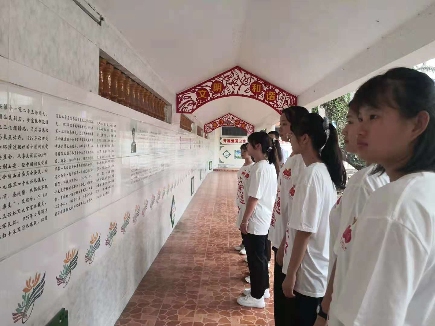 “在椰子寨峒主庙旁边有棵枇杷树,90多年前曾在这里传出一声呐喊:“革命同志死一人,生百人!”谁曾想这是杨善集同志最后的一次奋斗宣誓。1927年9月,为了反抗国民党反动派的屠杀,琼崖特委召开了九月会议,会议决定发起琼崖武装暴动,23日,发起椰子寨战斗。强渡万泉河、攻占椰子寨、会师峒主庙、激战加所坡,椰子寨战斗打响了琼崖共产党人武装反抗国民党反动派的第一枪,用无畏的精神讲述了琼崖共产党人不畏艰险,坚持革命的坚强决心,掀开了琼崖革命的序幕。在这场战斗中,杨善集同志不顾枪林弹雨,依然坚持站在高地亲自指挥战士们击败敌人,最后身中数弹,英勇牺牲;陈永芹以一敌多也不幸牺牲。9月23日,也成为了琼崖人民军队的诞辰。”跟随着团队成员雷雪同学的讲述,大家认真参观了椰子寨战斗纪念馆内展出的大量资料和图片,深入了解了王文明、杨善集、陈永芹等革命先烈的生平事迹,感悟琼崖纵队从无到有、发展壮大的光辉历程。