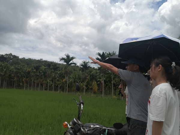 王光明老人还向团队成员讲述了红色哨站——尖岭的故事。据老人介绍,尖岭位于仙村村中心地带,岭势虽然不高,但却挺拔屹立,站在岭上远眺能俯瞰仙村村整体面貌,眺望东海之波涛。抗日战争时期,日本鬼子攻占仙村,依据当时进驻地势,在尖岭的东侧(南牛)和西侧(桥园)分别修建炮楼,驻扎重兵,在村里开展大规模屠杀、烧杀抢掠、无恶不作。而日本鬼子并没有占据尖岭,红军依托尖岭竖立哨线,昼夜轮流放哨,以青树枝为标志,日本鬼子从何方来而随之方向放倒。一日日上竹竿之高,村民们忙于备耕,日本人从桥园炮楼出发到西埇黄土坎,距离哨线几百米处发现哨线并开枪把哨线打断。犁田、耙田的村民看见哨线被打断急忙上山躲避,而有良民证的五个人挂上良民证继续犁田,被日本鬼子拖到了上埇村的荔枝树下严刑拷打,逼他们说出共产党的下落并交出枪支,但他们坚忍不拔并未屈服,终死在了日本人的枪下......虽然已到正午,但是大家仍聚精会神听着,记着,感动着。