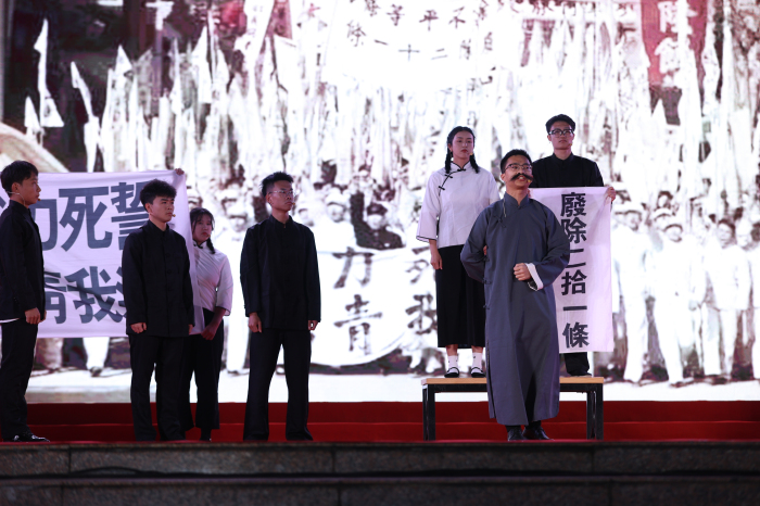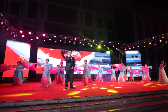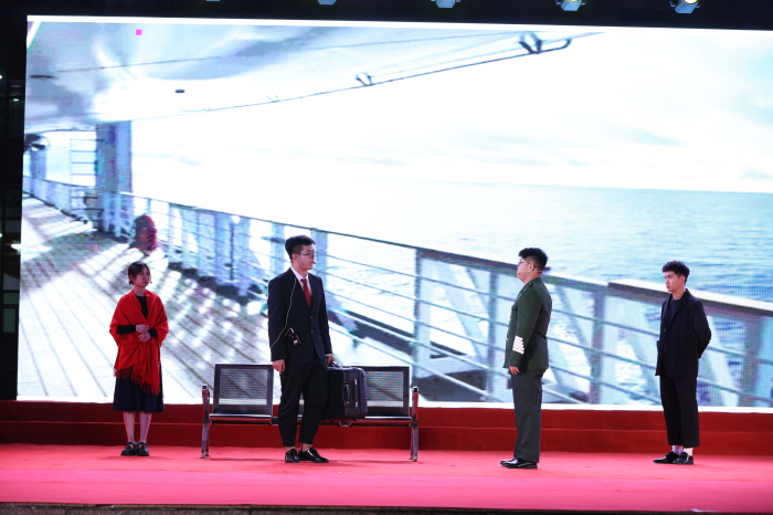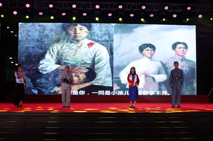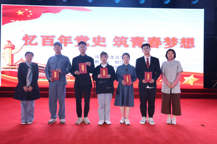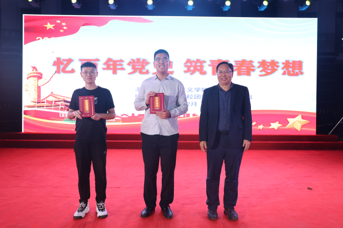 2021年12月8日晚,我院2021年思想政治理论课实践教学系列活动之“忆百年党史 筑青春梦想 ”大型情景剧晚会在经贸广场举行。学校党委书记张继友、党委副书记崔昌华出席活动。 此次情景剧通过“救国篇:开天辟地”、“兴国篇:改天换地”、“富国篇:翻天覆地”、“强国篇:惊天动地”四个篇章来进行展示,所有节目均充分地结合了本学期《思想道德与法治》课程教学内容、党史学习教育、习近平总书记的七一讲话,以及十九届六中全会的内容,由思政课教师亲自撰写剧本、指导,2021级学生代表参演,共同为全校师生演绎了一堂有思想、有情感、有内涵的思政大课。 晚会在朗诵节目《总有人 正年轻》中拉开帷幕,通过朗诵者的娓娓道来不仅帮助观众们了解了100年间,中国青年赤诚不改、步履不停的历史故事,也瞬间将现场观众带入对党的100年间所经历的艰难与蜕变。随后各个节目跟随着各个篇章的主题为在场观众献上了一场视觉盛宴。
