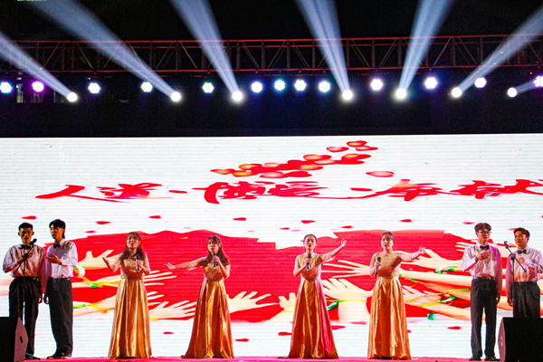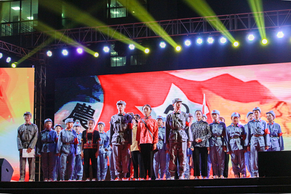 2019年12月10日晚,海南经贸职业技术学院“不忘初心、牢记使命”2019年思想政治理论课实践教学活动展示——情景剧表演活动在经贸广场举行。学校党委书记张继友、副院长万力维出席活动。