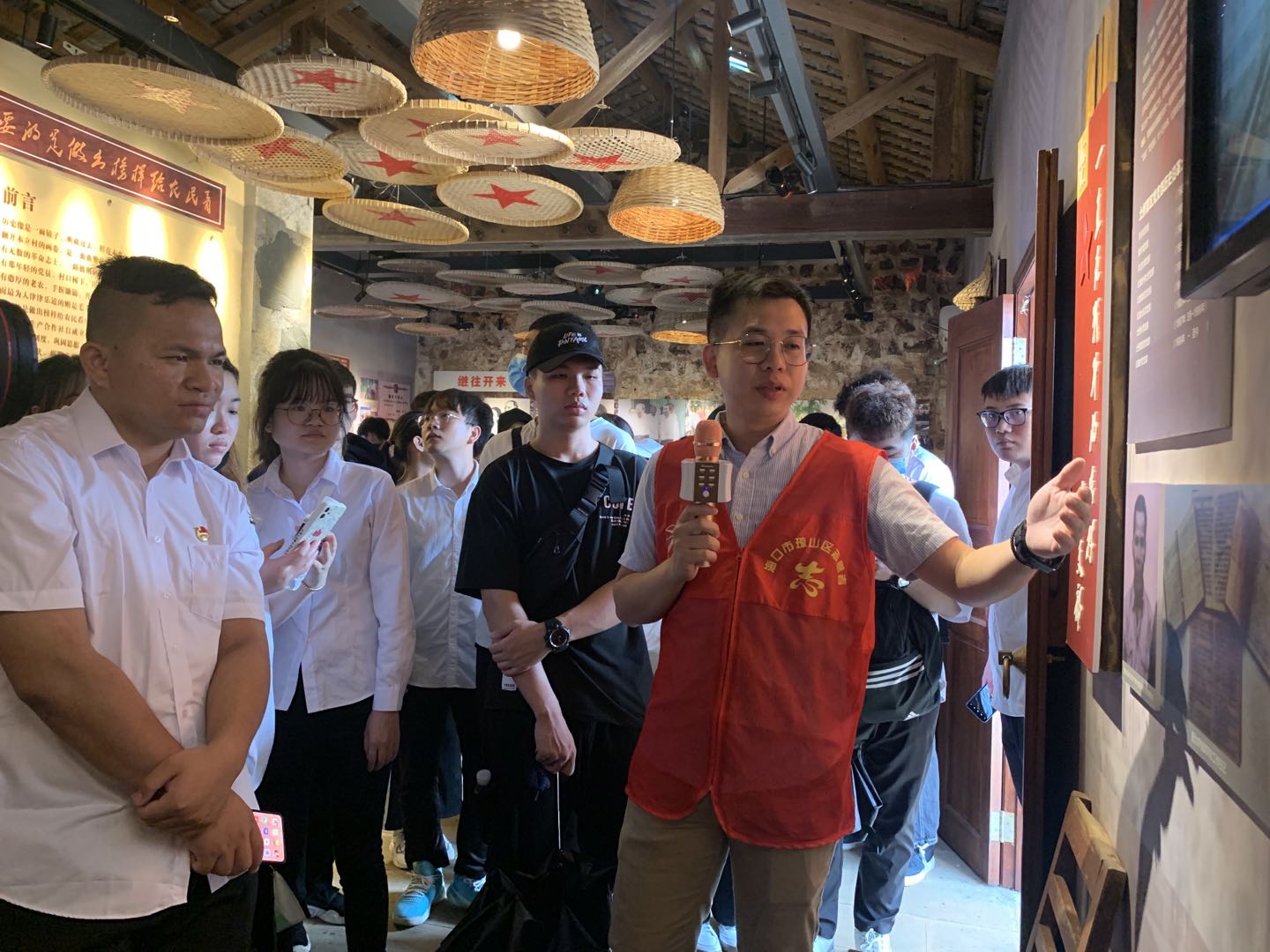 师生们沿途参观了彩绘革命墙画,瞻仰了先烈雕像,重温琼崖革命“二十三年红旗不倒”的光辉历史,让大家增强了勇担新时代赋予的历史使命的责任感和紧迫感。本立村的红旗农业生产合作社旧址让师生们记忆深刻,通过室内墙上挂着的陈旧的草蓑衣、竹斗笠、榨油锤、风雨灯、镰刀、锄头等农业合作社的文物,使大家深刻了解到新时代农村集体经济发展的路径和优势,感受新时代农村焕发出的勃勃生机。